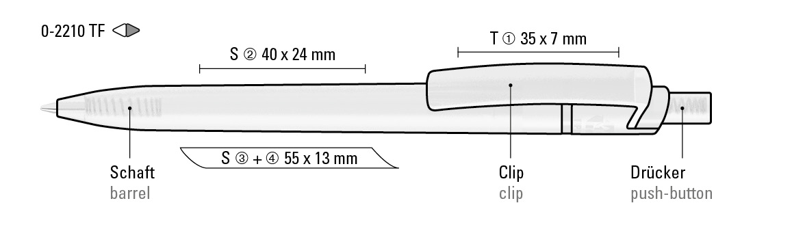 inkl. 1- farbigem Siebdruck auf dem Schaft.