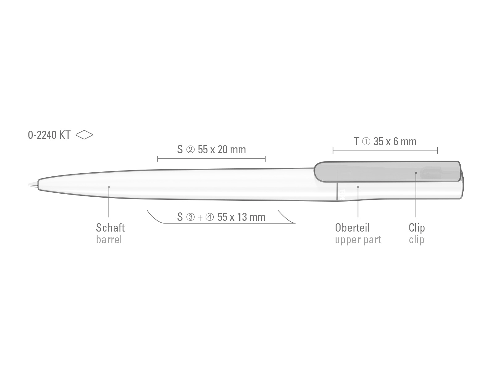inkl. 1- farbigem Siebdruck auf dem Schaft.